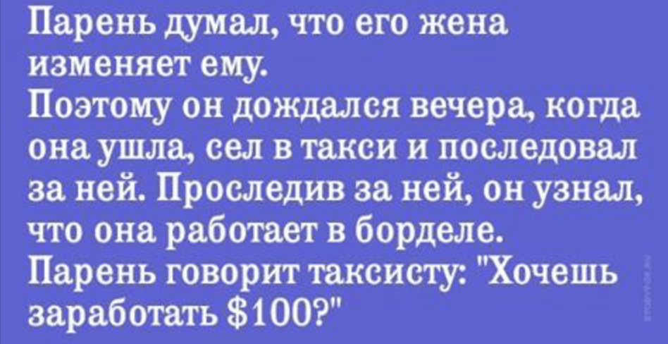 Ответ был простой: «Я просто боялась, что он все расскажет тебе». Я так понял, что он ее этим шантажировал. Не знаю, правда или нет, но поверил. Короче, ситуация хрен пойми какая.
